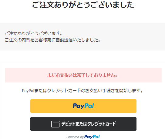 注文を確定しますと下記の画面が表示されます。